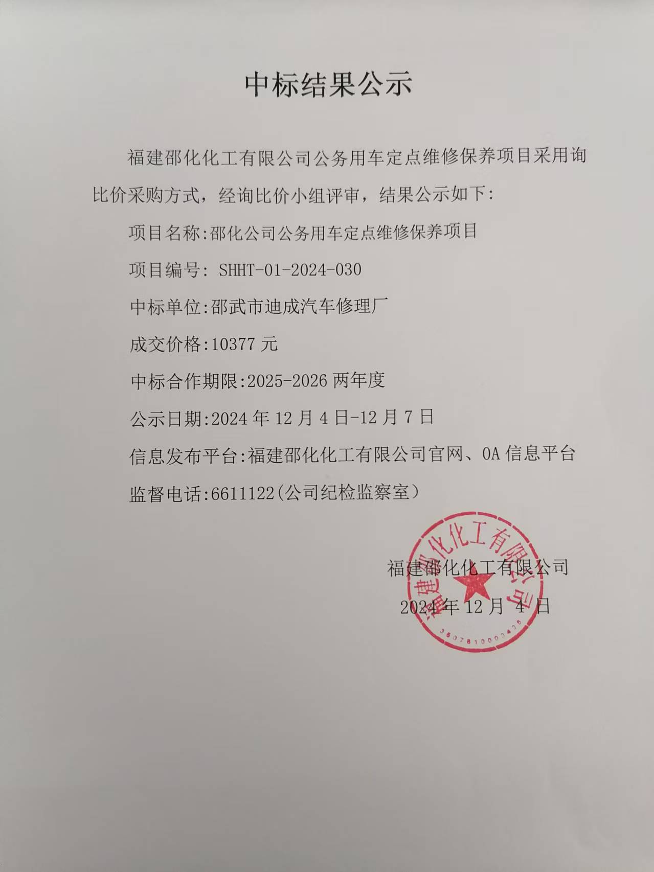2025-2026年度邵化公司商务用车辆维修、颐养